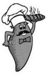 The mark consists of a caricature of a chef with a body shaped like an empanada carrying a plate of empanadas.
