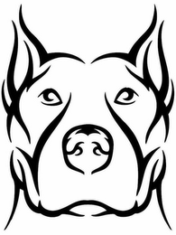 The mark consists of face of a pitbull dog in what appears to be a stenciled form.