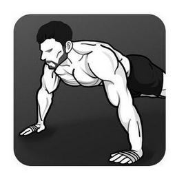 The mark consists of a man in a push up position. The image is on a shaded square with rounded corners.