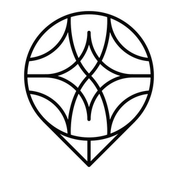 The mark consists of the shape of a map location pin; a united circle and a triangle shape with a center line pointing downwards. Within the circle is an incurved diamond shape with the left and right ends reaching the circle which represents a body of water in an oasis. Four peaks encircle the diamond shape, with the curved paths crossing in the center to symbolize the desert mountains.