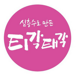 The non-Latin characters in the mark transliterate to "Shim-cheng-soo-ro-man-den" and this means "made by deep water" in English. The non-Latin characters in the mark transliterate to "Tigak Taegak" and this has no meaning in a foreign language.