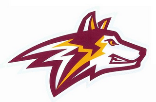The mark consists of a profile of a white and dark red wolf head with gold highlights and a gold eye. The remaining white represents background and does not form part of the mark.
