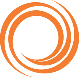 The mark consists of a circular inwardly swirling line, which comes to a point in the center, and swirls back out again, all in the color orange.