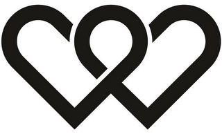 The mark consists of two interlocking hearts, one on the left and one on the right wherein their upper right and upper left inner corners overlap to form an inverted teardrop design.