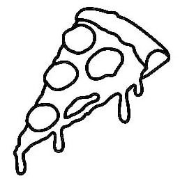 The mark consists of an outlined image of a slice of pizza with circular toppings and drips of cheese.