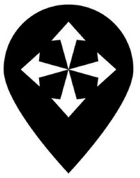 The mark consists of of the design of an inverted teardrop shape having four arrows in the middle of the teardrop shape. Each arrow points in a different direction, namely, the arrowheads point up, down, left and right and the tails of the arrows all originate from the same point.