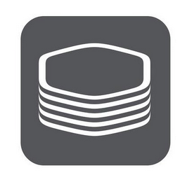 The mark consists of an image of a stacked, six sided object in a shaded box with rounded corners.