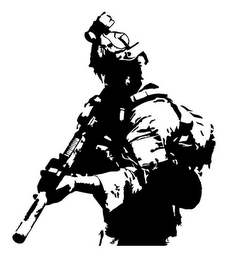 The mark consists of the stylized design of the upper torso of a combat soldier, wearing a helmet, a backpack and having a rifle in a ready position.
