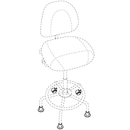 The mark consists of the three-dimensional configuration of the combination of two casters and 3 glides at the bottom of an office chair. The broken lines depicting the shape of the chair indicate placement of the mark on the goods and are not part of the mark.