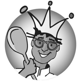 The mark consists of a cartoon character within a circle consisting of a man, wearing glasses, a chef's coat, a head crown and holding a spoon.
