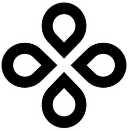 The mark consists of four hollow tear drop petal shapes with their points facing the center to form a cross. The negative space created by the splitting petals forms a cross.