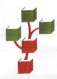 The mark consists of Three forest green cubes (26.19.04) showing two sides of each cube in green and the top of the cube in white and two auburn brown cubes (26.19.04) showing two sides of each cube in auburn brown and the top of the cube in white linked together in the shape of a tree (05.01.25).