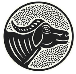 The mark consists of a circular outline, a profile of a bull within the circular outline, the bull having a partial body, a head, and a horn, and a plurality of small dots or specs surrounding the profile of the bull within the circular outline.