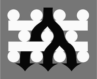 The mark consists of a lattice element on a box background. The lattice element consists of 4 circles aligned horizontally, with a horizontal rectangle beneath the four circles. Underneath the rectangle are three circles aligned horizontally. Another horizontal rectangle is below the three circles. Underneath the second horizontal rectangle are four circles aligned horizontally. Fluid depicted in the image of three arrows formed from one root flows from the top of the lattice element and continues throughout the middle.
