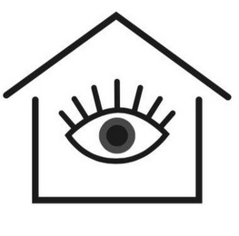 The mark consists of design of a house containing an open eye with eyelashes on top of the eye.