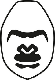 The mark consists of an oval shape which is the outline of a gorilla's head. Within the oval is an outline of the brow line, below that is the outline of the nostrils and upper lip, below that is an outline of the lower lip.