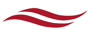 The mark consists of two wavy parallel red stripes that appear to be in motion. The color white represents background, outlining, shading and/or transparent areas and is not part of the mark.