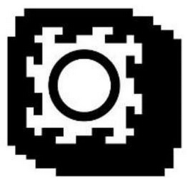 The mark consists of a graphic image of a toy block in which a darker circle is centered over a lighter square edged with eight projections, which is in turn superimposed on a darker primarily square shape shown in perspective with jagged corners that reflect the three-dimensional nature of the block.