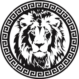 The mark consists of the outlining of a lion's face with a dimensional mane encircled in a meander pattern.