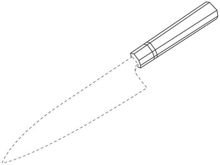 The mark consists of knife handle having a generally octagonal cross section with a band perpendicular to the axis of the handle located closer to the blade than the end of the handle.