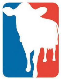The mark consists of a design of a cow silhouette in white inside of a rectangle with the left half in blue and the right half in red.