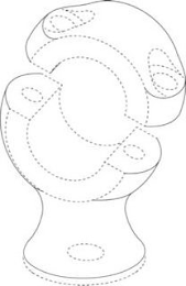 The mark consists of a three-dimensional configuration of a motorcycle riser with a short round and flared base, and the top portion of the riser is round with a hole in the middle and two bolt holes where bolts would go to hold the two separate pieces together. The matter shown in broken or dotted lines is not part of the mark and serves only to show the position or placement of the mark.