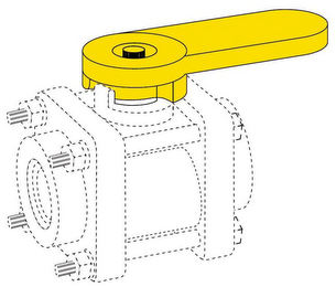 The mark consists of trade dress for a handled affixed to a valve wherein the handle is rounded at the end that is attached to the valve body and an elongated oval for the area for the user's hand hold. All parts of the handle are yellow.