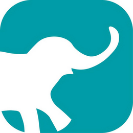 The mark consists of a square with rounded corners in the color blue, in which there is an image in the color white of the front half of an elephant, displaying the head, truck, front feet and front part of the elephant's body.