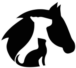 The mark consists of A cat juxtaposed over a dog juxtaposed over a horse.