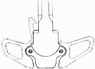 The mark consists of a graphic linear design image of a generally T-shaped device having arms that are angled inward toward the stem.