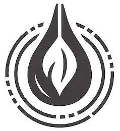 The mark consists of a liquid drop with upside down leaf in middle; surrounded with two broken lines in shape of circle around drop.