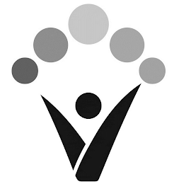 The mark consists of a geometric figure of a man with upraised arms, reaching toward partially shaded circles in an arch above the geometric figure, with sizes increasing and decreasing symmetrically from left to right.