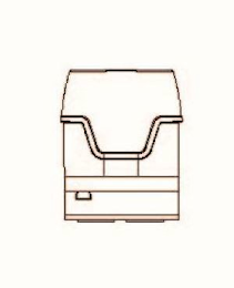 The mark consists of a two-dimensional vertical short rectangle with one side ending in a capped curved plain single line ovals with a parallel lined curved half-hexagonal shape partially intersected by a small rectangle positioned in the center of the short rectangle, and with three long and narrow single lined rectangles positioned inside the right-angled end of the short rectangle, with one such narrow single lined rectangle with a single line trapezoidal shaped quadrilateral, and two long and narrow single lined rectangles positioned outside the right-angled end of the short rectangle.