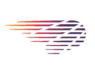 The mark consists of nine horizontal lines in varying colors from yellow, orange, red, and purple split diagonally into four sections.