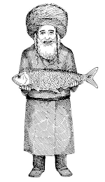 The mark consists of a bearded man dressed in Hasidic garb holding a fish in his hands.