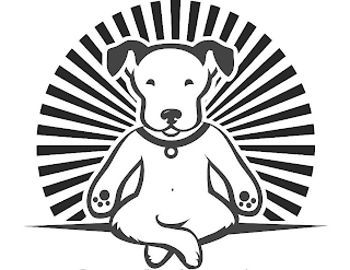 The mark consists of Seated dog facing viewer surrounded by rays.