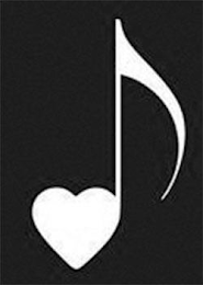 The mark consists of a musical note with the note head in the shape of a heart and a note flag to the right of the note stem.