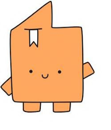 The mark consists of artwork depicting a humanized version of an open book with arms and legs in the color orange, showing black eyes and nose with white bookmark.