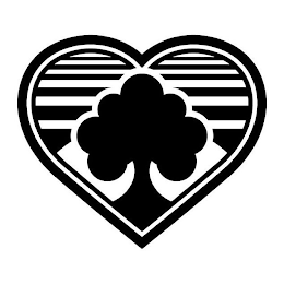 The mark consists of a stylized image of a heart shape with two heart-shaped concentric outlines. In the center of the image is a stylized image of a tree with horizontal lines appearing as the background of the tree to create a horizon. The horizontal lines are thinner the higher up they are and progressively become wider further down. The lines stop halfway down the heart. All instances of the color white represent background or transparent area only and are not claimed as a feature of the mark.