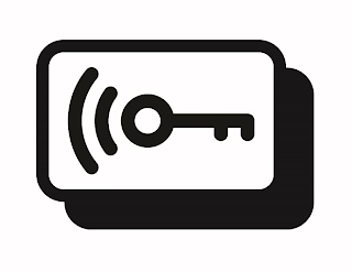 The mark consists of a stylized key with 2 waves emanating to the left, all within a rectangle with rounded edges and the rectangle's shadow visible behind.