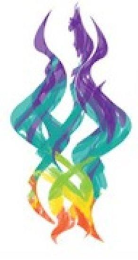 The mark consists of an abstract wave vector design in shades of teal, purple, green, yellow and orange.