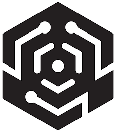 The mark consists of a cube showing three faces. Four circles appear on the cube: one at the top front corner, one on the left face, and two on the top face. Three bent lines surround the circle at the top front corner. Each of the other three circles has a line extending from it and bending around the edges of the cube.