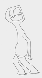 The mark consists of the side view of an alien figure, wearing hoodie, showing one arm, one hand, two legs, two eyes and two short eyebrows.