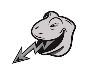 The mark consists of a stylized head of a frog with an open mouth and tongue sticking out in the shape of a stylized zig-zag arrow.