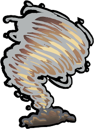 The mark consists of an image of a swirling tornado, the body of the tornado appearing in grey outlined by black and having swirls of gold in the body of the tornado, a dust cloud appearing in grey below the body of the tornado. All design features are against a white background.