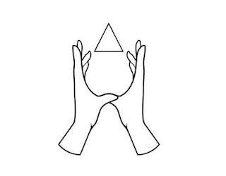 The mark consists of two hands with the thumbs touching above which appears the design of a triangle.