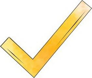 The mark consists of a yellow check mark with a black border with a black line placed just inside the bottom of the left portion of the check mark and a black line placed just inside the right most edge of the check mark.