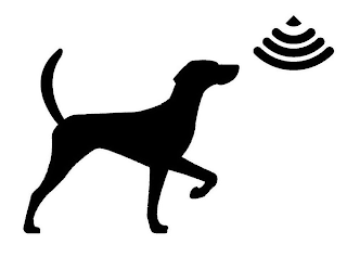 The mark consists of a pointing dog outline to the left of an inverted triangular shaped symbol comprised of curved lines.