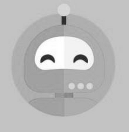 The mark consists of a stylized image of a stylized robot inside of a circle from the shoulders up. The stylized robot has a semi-circle head with three circles on the bottom right corner of its face. The stylized robot also has crescent shapes eyes shown inside of a bean shaped opening in the face and an antenna on top of its head with a circle on top.