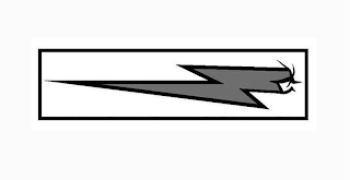 The mark consists of a stylized horizontal lightning bolt with the silhouette of an eye with lashes and brow at the thick end of the bolt, all of the design elements appear inside a rectangle.